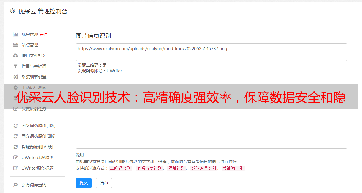 优采云人脸识别技术,具有极高精确度和强大效率。采用深度学习策略,可以在各类环境中准确捕捉面部特点,迅速实现匹配和辨识。此外,其出色的适应性和稳定性,使其能够应对各种光线、表情以及配饰变化,始终保持稳定的识别效果。同时,我们高度重视数据安全和隐私保护,采用加密传输和安全存储措施,确保用户数据得到充分保障。