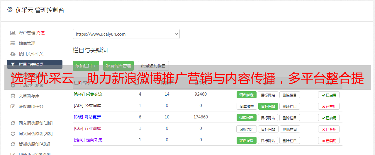 选择优采云,助力新浪微博推广营销与内容传播,多平台整合提升工作效率