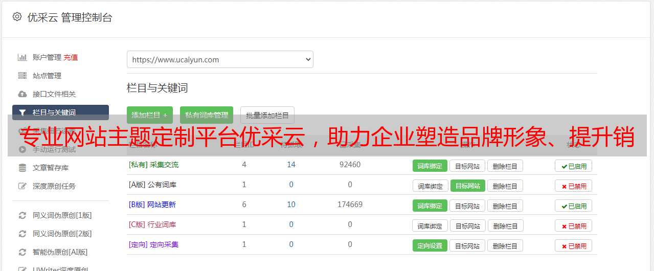 专业网站主题定制平台优采云,助力企业塑造品牌形象、提升销售额