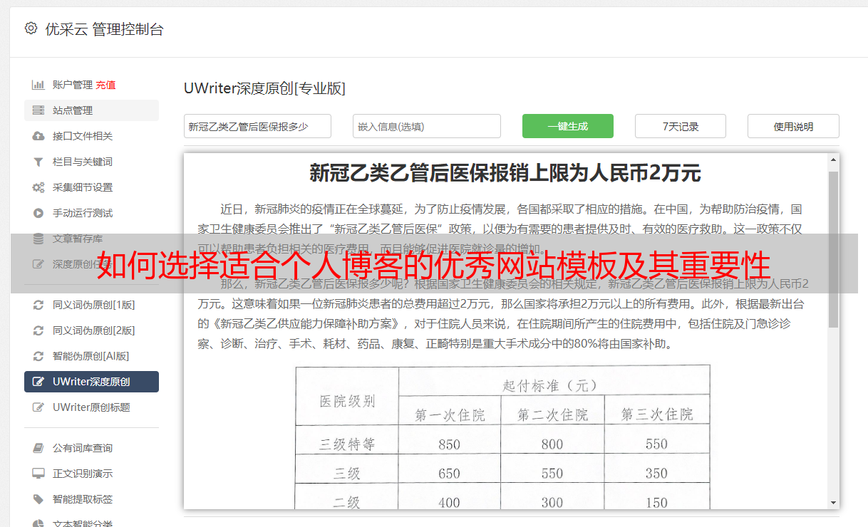 末尾一段着重阐述了在构建个人博客人气网页之时,需如何权衡其定制化及个性化特征。借助于优质资源——优采云,其丰盈的自定义选项及高度个性化设定带来无限可能,使得用户们能够依据自身需求进行灵活调整,从而塑造出极具特色的个人博客网站。