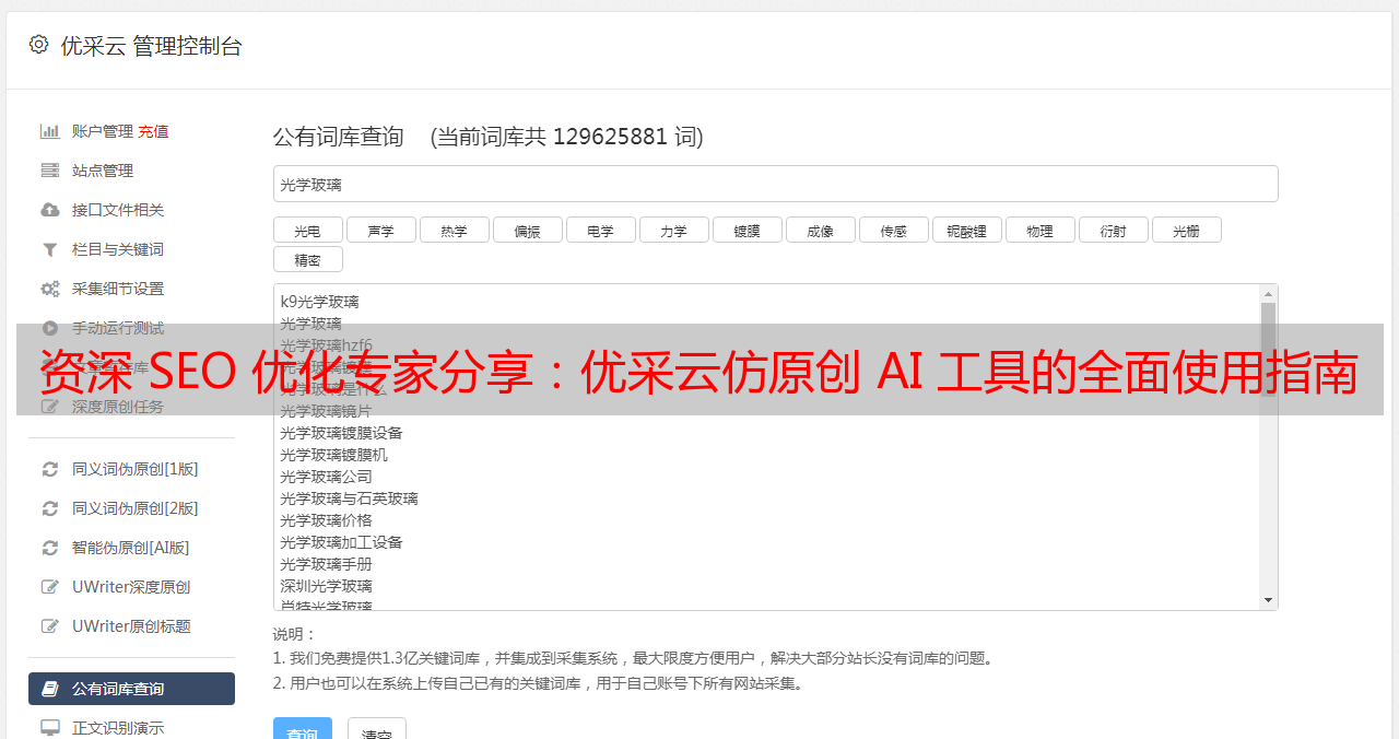 资深 SEO 优化专家分享:优采云仿原创 AI 工具的全面使用指南