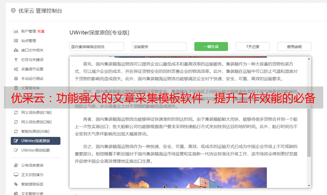 优采云:功能强大的文章采集模板软件,提升工作效能的必备工具