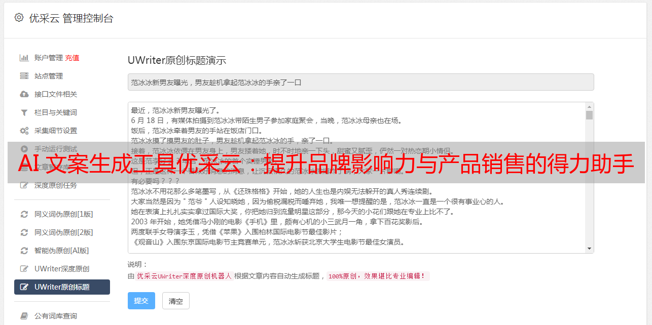 AI 文案生成工具优采云:提升品牌影响力与产品销售的得力助手
