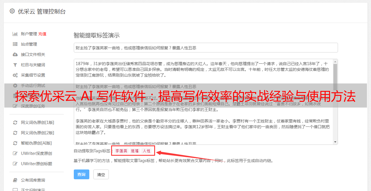 探索优采云 AI 写作软件:提高写作效率的实战经验与使用方法