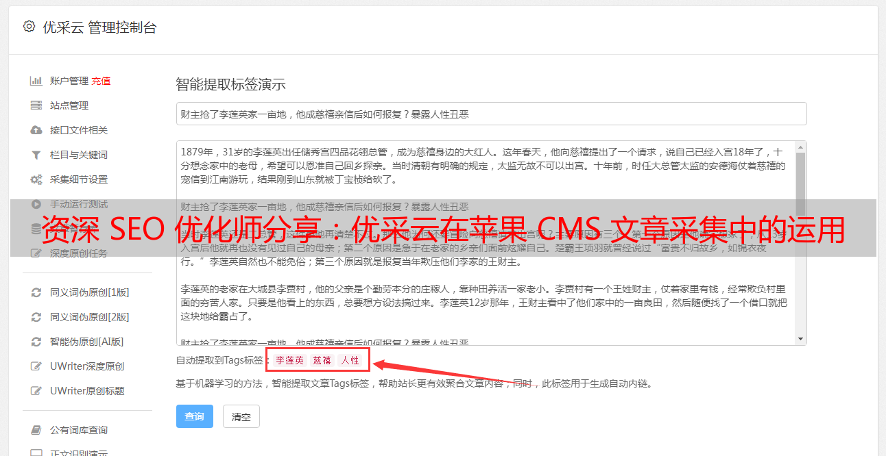 资深 SEO 优化师分享:优采云在苹果 CMS 文章采集中的运用手法与优化策略