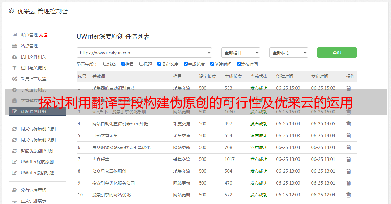 优采云 发布时间: 2024-06-07 05:08在今天这个内容为主导的数字环境中,原始创新已然成为衡量文章价值的核心标尺。然则,众多内容制作者及网站运营者仍面临着如何持续保持高质量原创内容输出的巨大挑战。在此背景下,伪原创技术应时而生,成为当下炙手可热的内容处理方式。本篇文章将聚焦于探讨采用翻译手段构建伪原创的可行性,同时详细解析如何运用优采云有效推进此过程。
