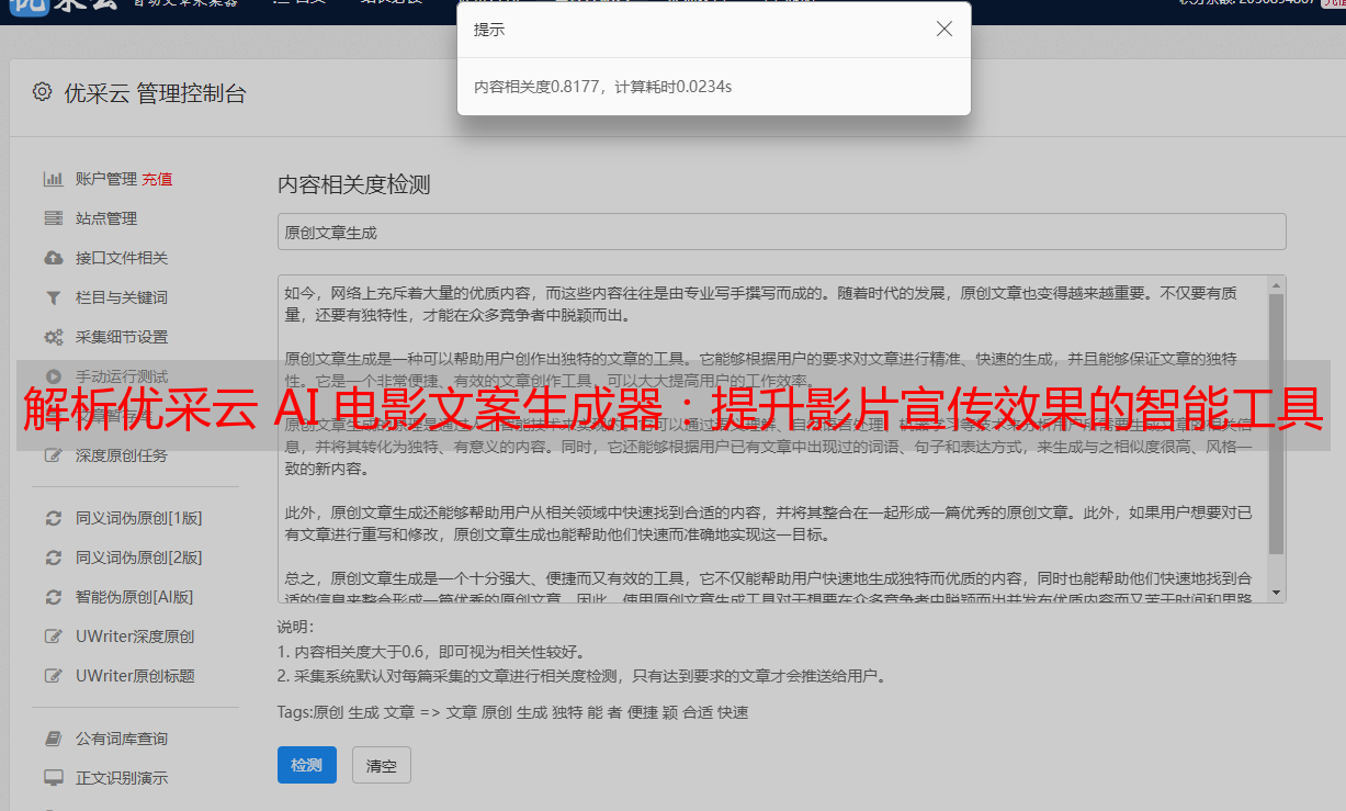 解析优采云 AI 电影文案*敏*感*词*:提升影片宣传效果的智能工具