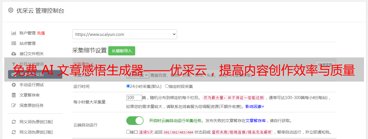 免费 AI 文章感悟*敏*感*词*——优采云,提高内容创作效率与质量的神器