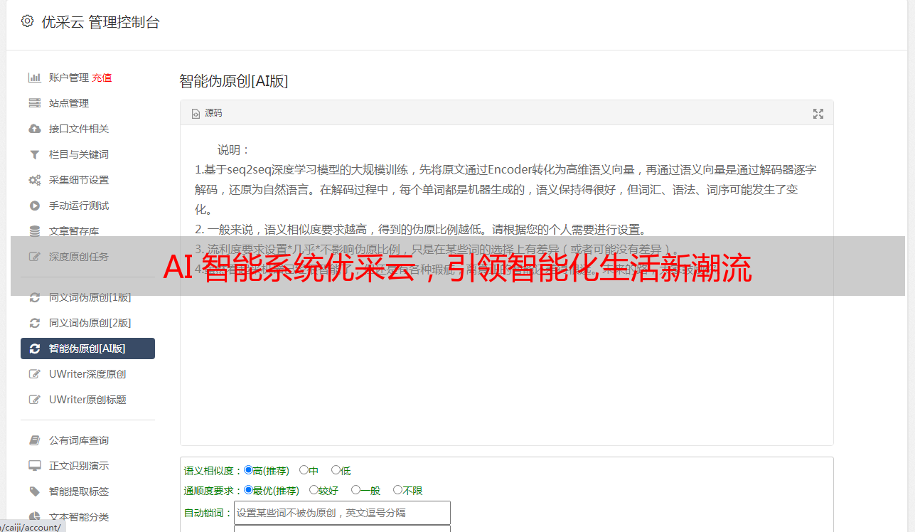 优采云的界面布局直观易懂,操作流程人性化便捷。无需具备高深科技知识,普通用户亦能快速适应并体验到人工智能技术的高效服务。更值得一提的是,平台配备大量图文指导与帮助资料,用户在遇到困扰时可迅速寻求解决策略,从而显著提升工作效能。
