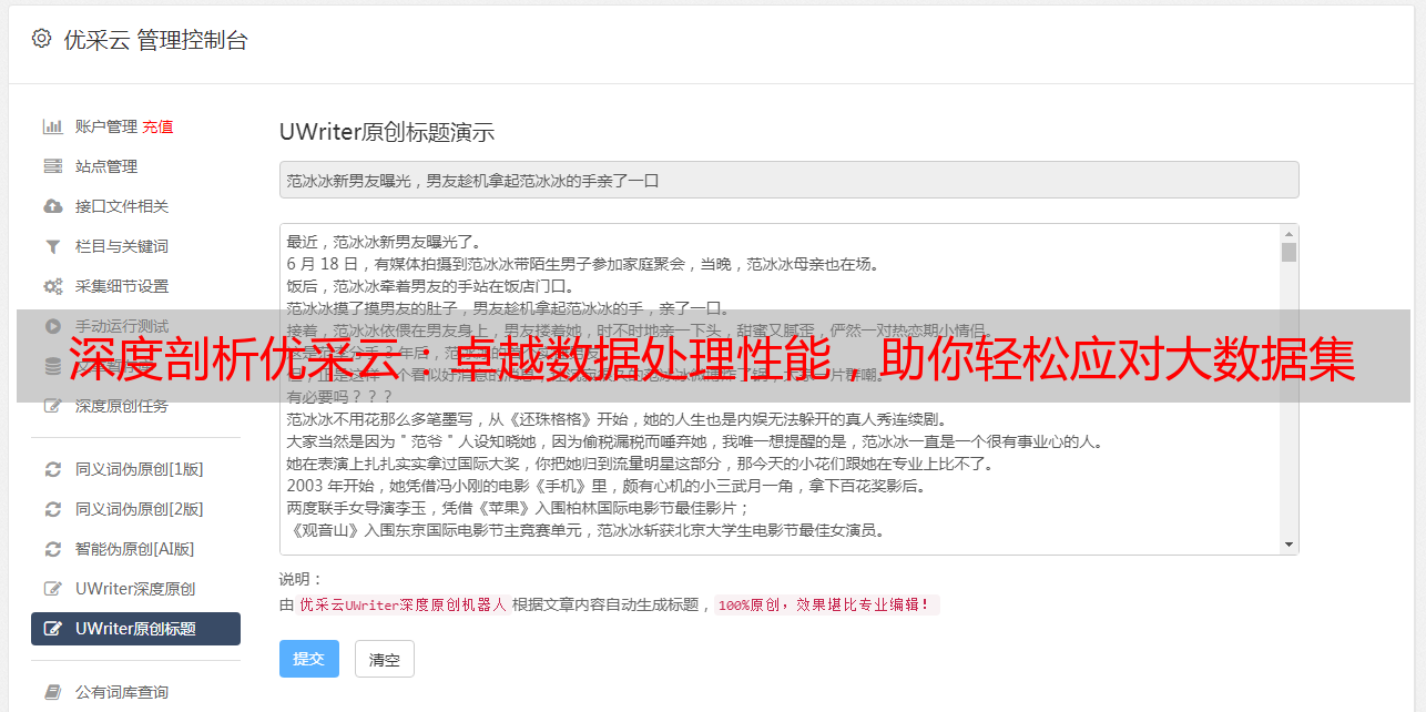 深度剖析优采云:卓越数据处理性能,助你轻松应对大数据集