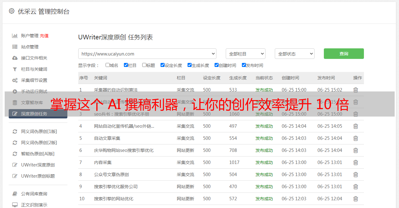 借助优采云的自动文本生成技术,用户仅需输入关键字或简短描述,便可迅速生成内容丰富且语言流畅的文章。此项功能显著提升了写作效率,同时也为创新思维的快速落地提供了有力支持。