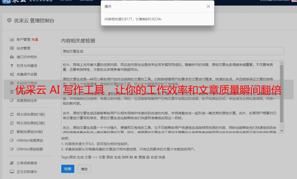 优采云 AI 写作工具,让你的工作效率和文章质量瞬间翻倍