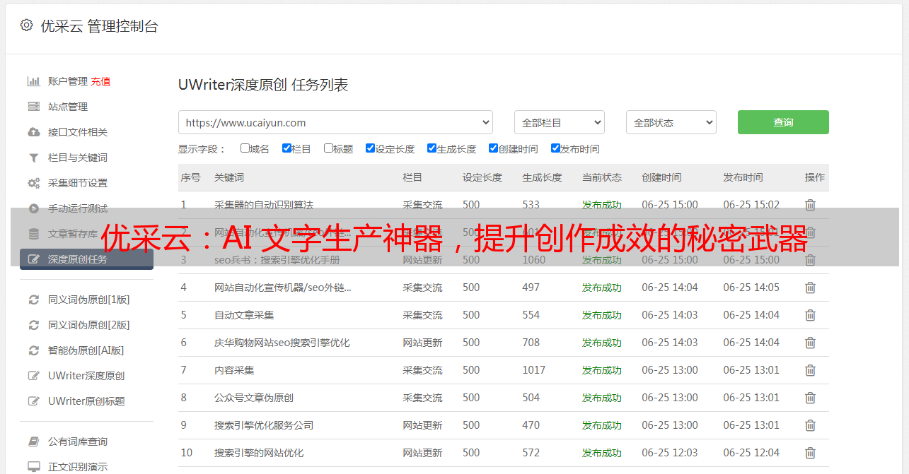 优采云:AI 文字生产神器,提升创作成效的秘密武器