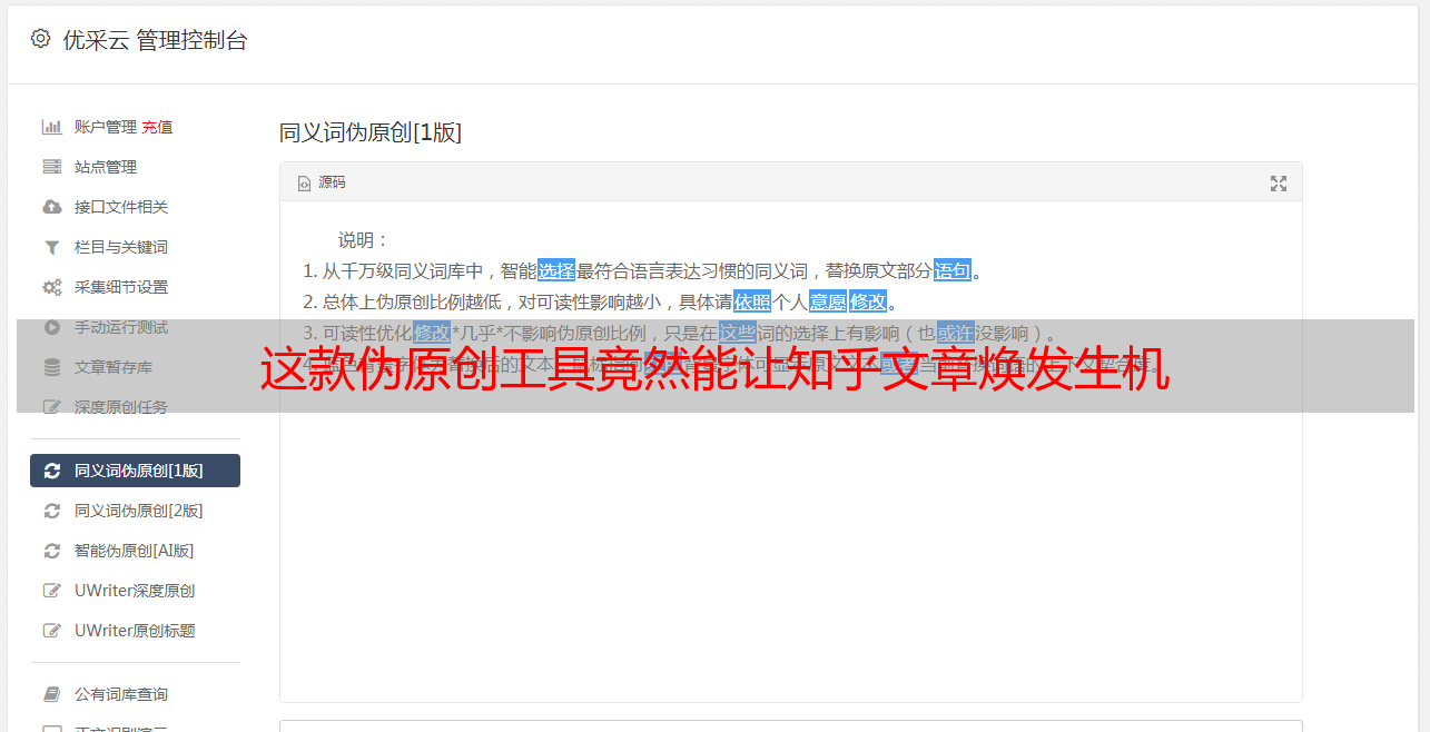 首先,优采云具备优秀的原创能力提升功能,这对知乎这类强调优质内容的平台具有重大意义。其次,其操作简易便捷,对于未具专业写作经验的用户亦可迅速掌握。再者,优采云提供多语种及各领域的文章改写服务,以满足各类用户的多样化需求。