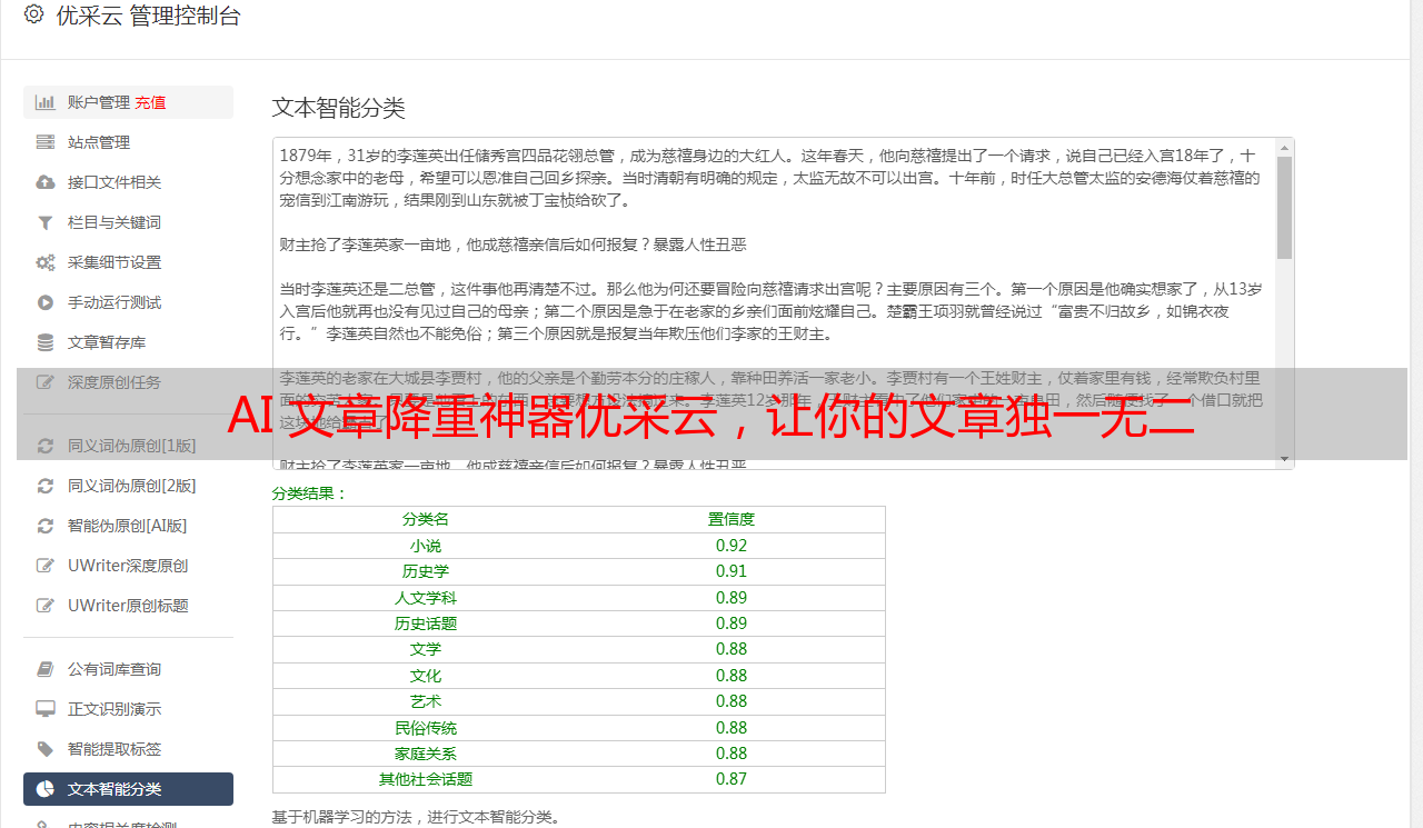 优采云 发布时间: 2024-06-21 14:20在当前信息泛滥的背景下,版权保护与学术诚信显得尤为重要。身为一位资深的内容创造者与编辑,我深谙文章降重对确保原创性及规避抄袭指控的关键作用。今日,我愿分享自身经验,尤其是关于优采云AI文章降重工具的运用策略与技巧,以期为广大内容创作者提供便利,提升工作效率。