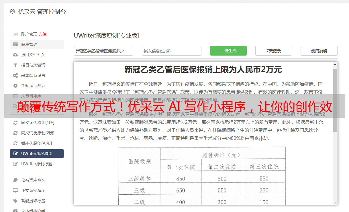 颠覆传统写作方式!优采云 AI 写作小程序,让你的创作效率翻倍