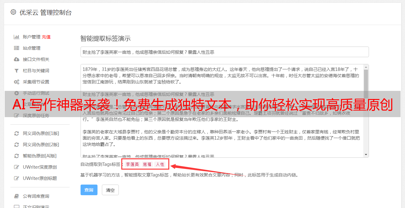 如何使用优采云AI生成原创文章