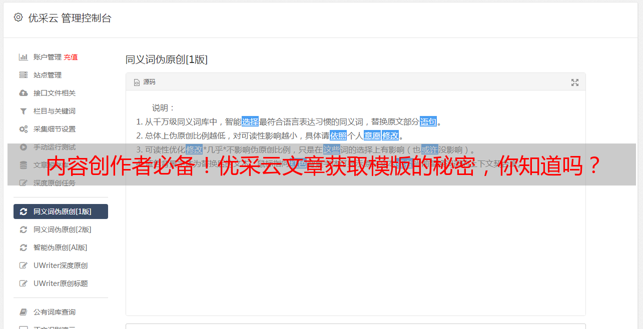内容创作者必备!优采云文章获取模版的秘密,你知道吗?