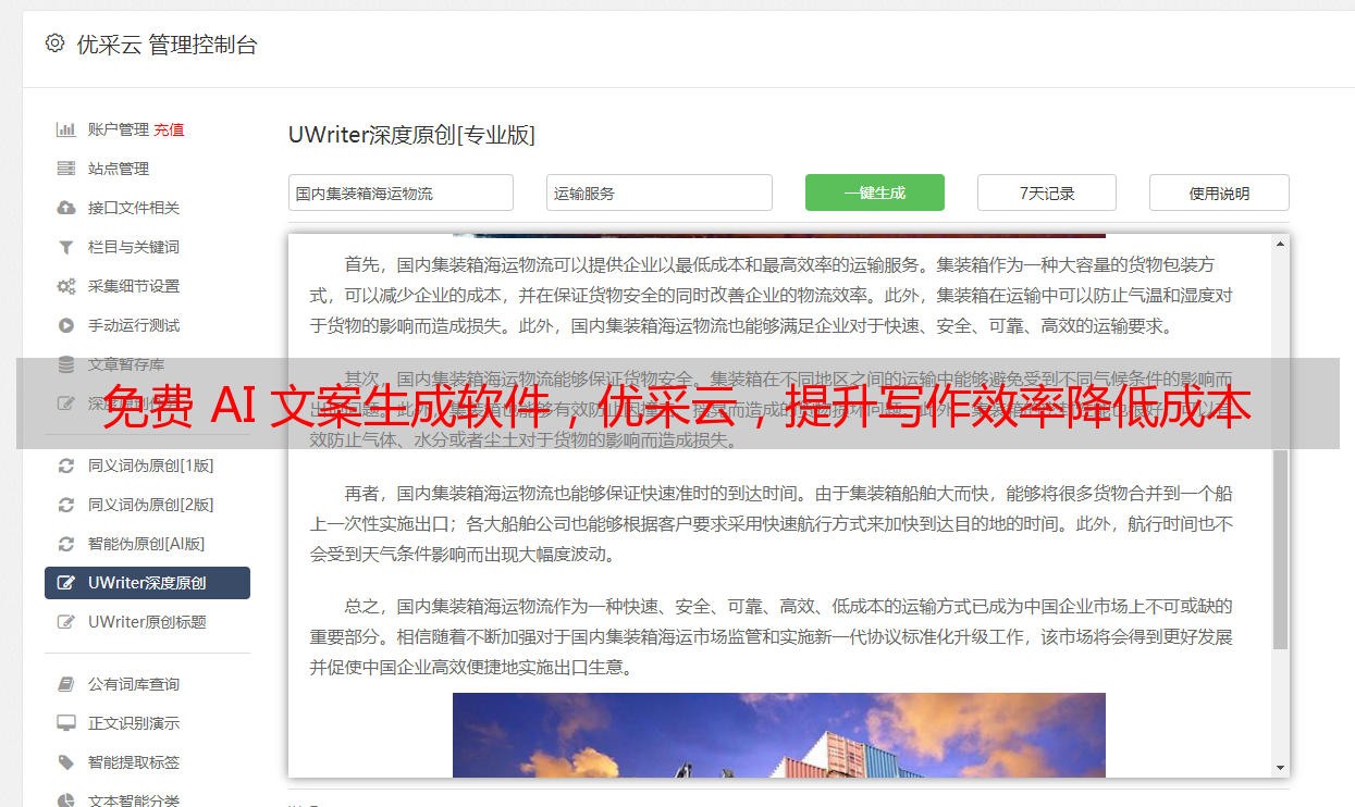 免费 AI 文案生成软件,优采云,提升写作效率降低成本