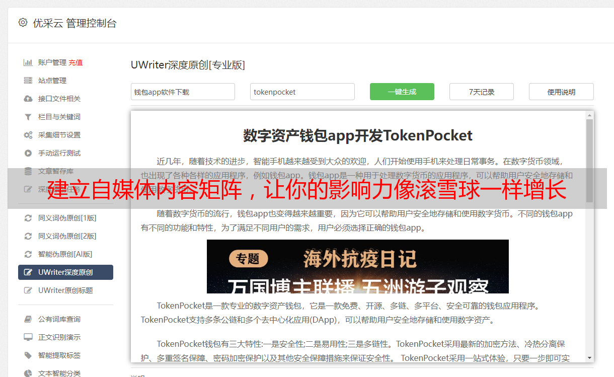内容品质乃内容矩阵核心环节。借助优采云之内容审校功能,可高效剔除不合格元素;同时深化内容处理,如精炼标题、重构架构、添注洞见以保质。定期审视与优化亦不可或缺,以确保持续高品质内容输出。