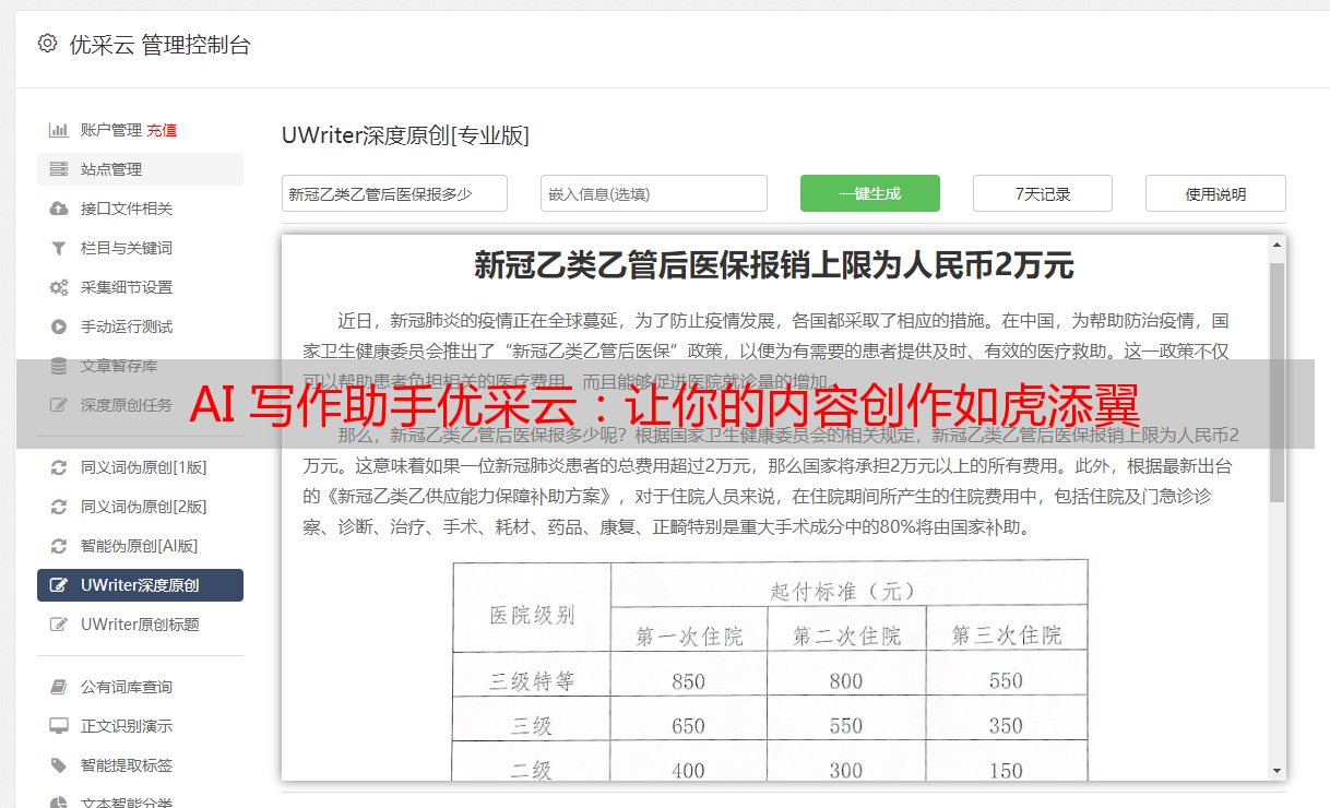 AI 写作助手优采云:让你的内容创作如虎添翼