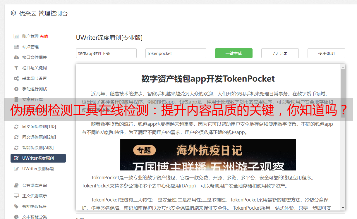 伪原创检测工具在线检测:提升内容品质的关键,你知道吗?