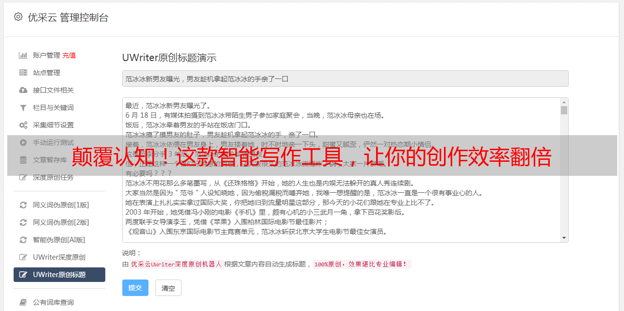 优采云的操作极具便捷性与直观性,仅需用户输入关键词或是选定文章主题,系统即能自动生成相关文章。并且,还具备众多模板及风格可供选择,用户可按需求调节文章语气乃至风格,以更好地迎合特定受众群或发布平台的特性。