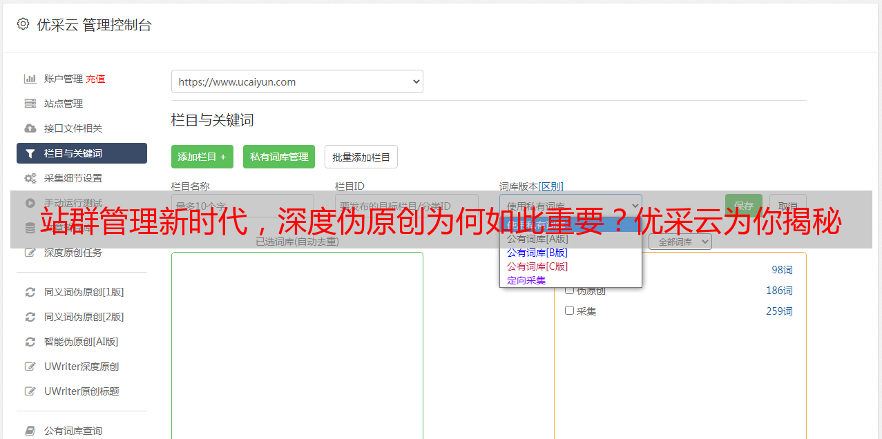 站群管理新时代,深度伪原创为何如此重要?优采云为你揭秘