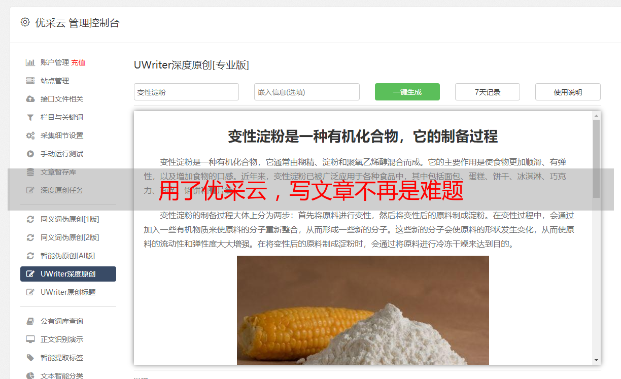 优采云 发布时间: 2024-07-04 10:22在数字化浪潮席卷之下,人工智能(AI)技术已深入我们日常生活的各个角落,尤其在内容创作领域,诸如优采云等AI文章生成工具已然成为众多创作者的得力助手。身为一位长期依赖优采云的资深用户,笔者在此与诸位共享一些运用该工具的经验与心得,期望有助于各位更高效、高质地完成写作任务。