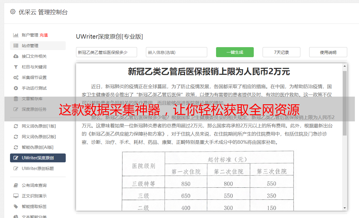 以下展示了优采云在多个应用场景中的卓越能力,以便您能深入理解它的强悍性能。