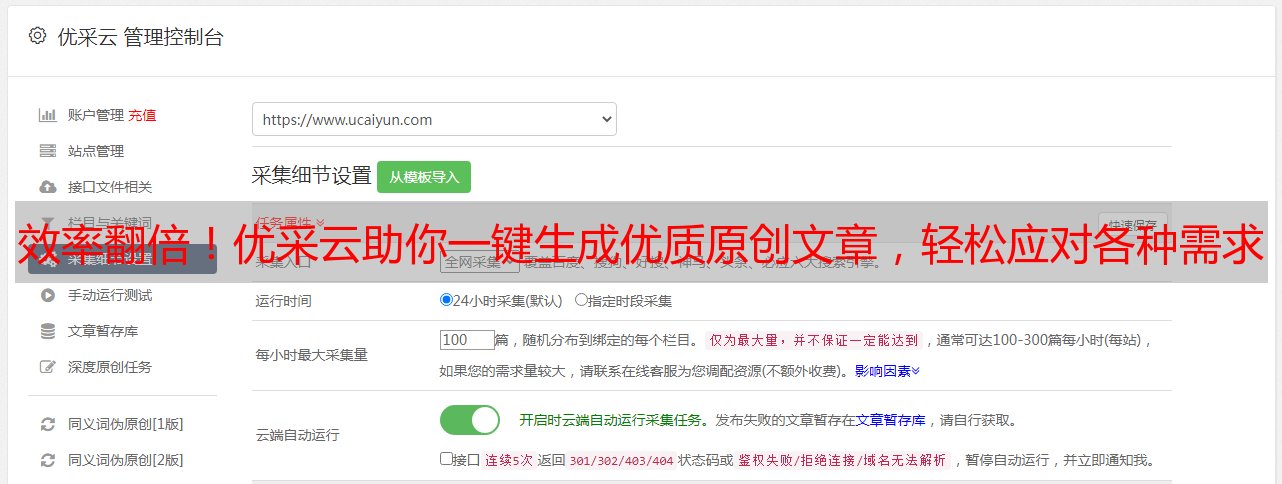 效率翻倍!优采云助你一键生成优质原创文章,轻松应对各种需求