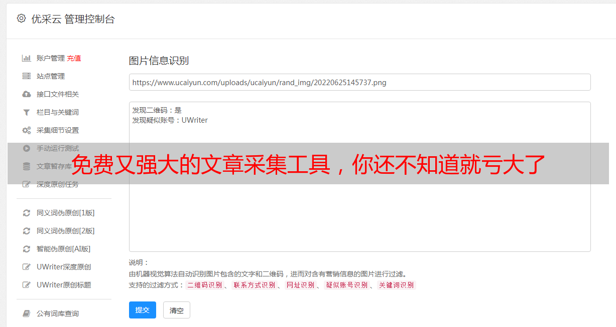 优采云的内容分析工具具备关键词密度分析与情感分析功能,有助于全面评估采集内容的质量并对后续的内容创作提出指导性建议。该平台旨在助力用户深度挖掘信息潜力,调整创作策略,实现最佳效果。