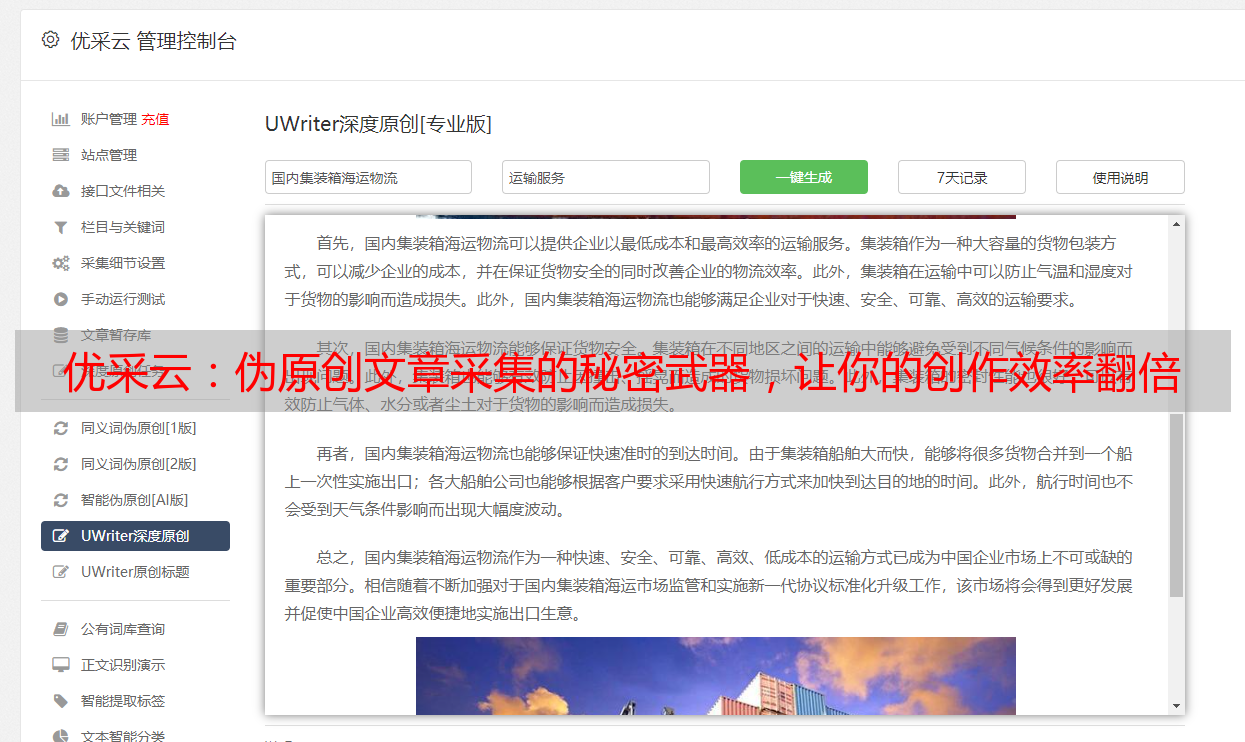 优采云:伪原创文章采集的秘密武器,让你的创作效率翻倍