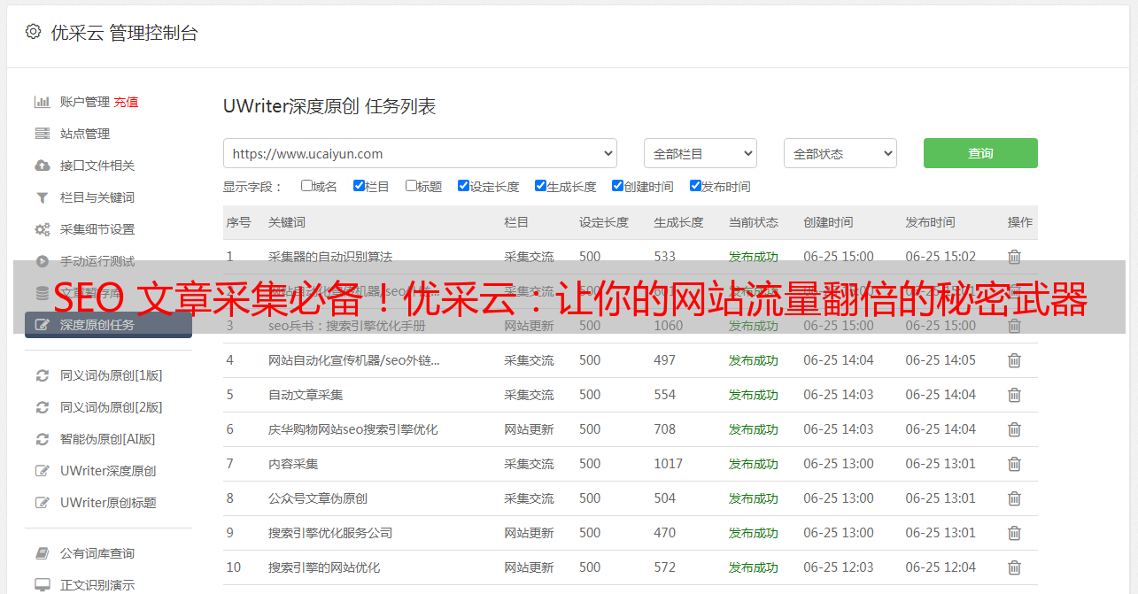 SEO 文章采集必备!优采云:让你的网站流量翻倍的秘密武器