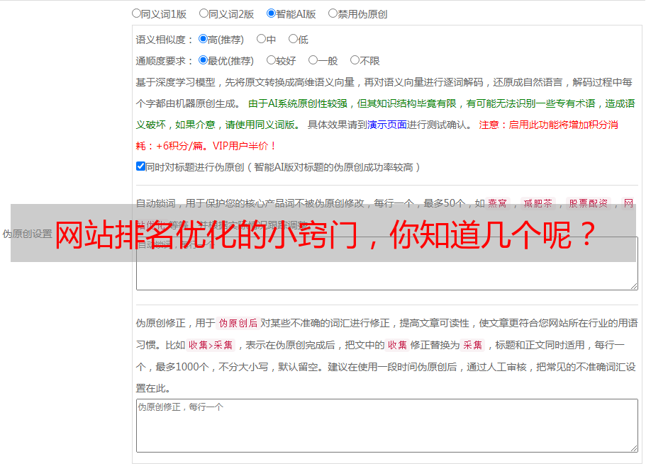 网站的基础优化很重要。一些基本的优化技术不太可能出错。 网站基本优化设置,包括但不限于代码优化、关键词定位和密度优化、内容构建、权限构建等,也就是说可以查看和指导一些基本的关键词排序文章。