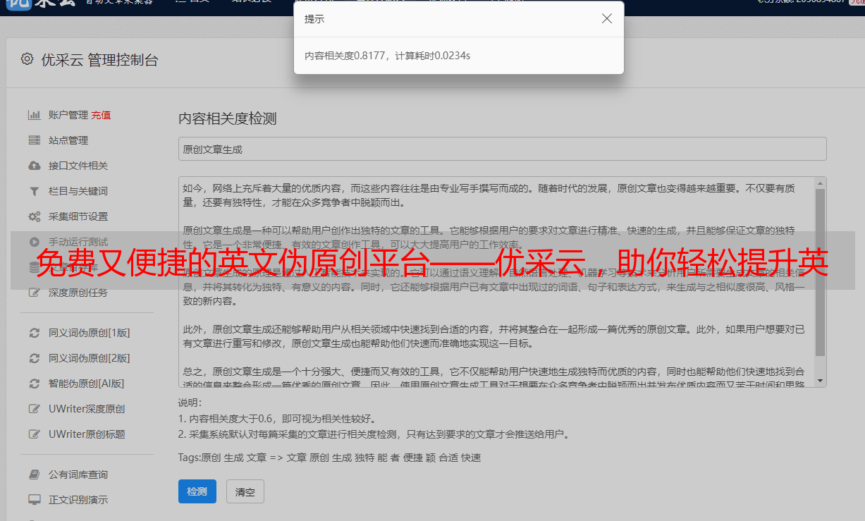 免费又便捷的英文伪原创平台——优采云,助你轻松提升英语写作水平