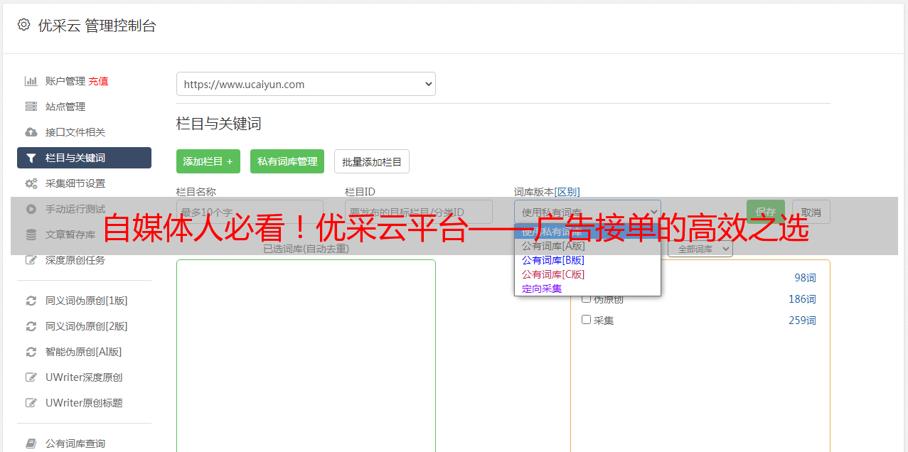 首先,让我们初步认识一下优采云平台。该平台是面向自媒体人的专属广告接单平台,旨在搭建广告主与自媒体人之间的桥梁,提供高效便捷的交易环境。平台涵盖各类广告形式,如品牌广告及产品推广等,以满足各类型自媒体人的需求。更为重要的是,优采云还提供全方位的服务,包括广告投放、数据分析以及效果追踪等,从而显著提升工作效率。