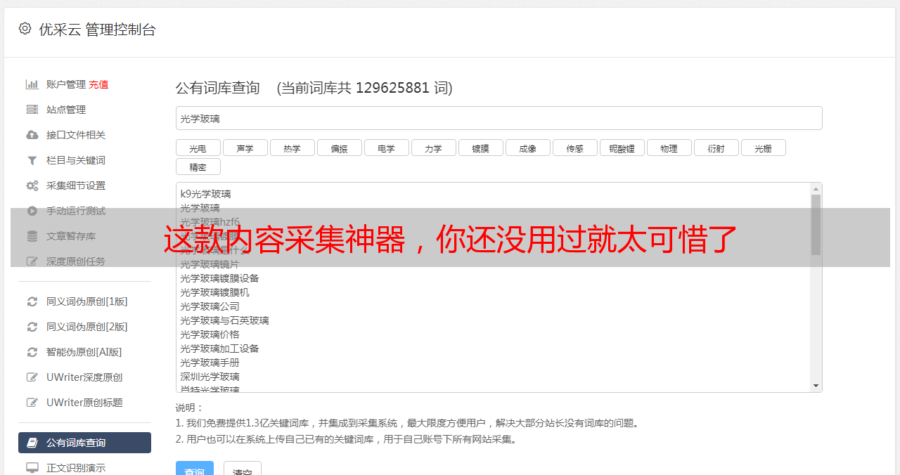 依托这些全方位支持和周到服务,用户可安心信赖优采云,倾力投入网站内容的精细化管理及质量提升。我们的精英团队亦会密切关注您的需求,持续改良产品性能,致力于为您呈现卓越非凡的服务品质。