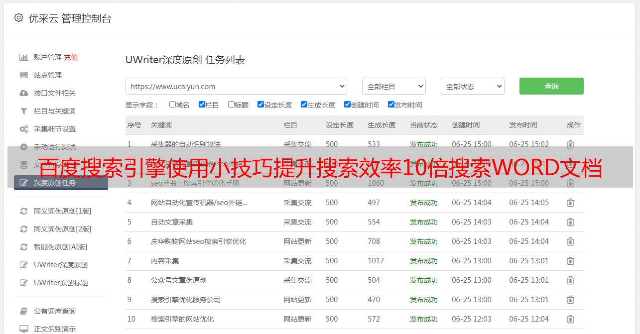 优采云 发布时间: 2021-06-30 00:16百度搜索引擎使用小技巧提升搜索效率10倍搜索WORD文档