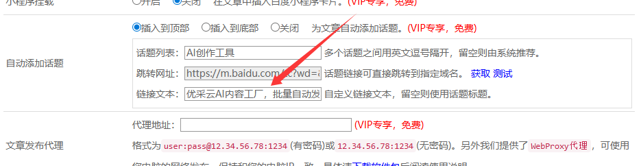 到此,实际上就可以实现话题自动跳转了,但链接的文本是前面输入的话题名称。如果需要自定义链接文本,就在下面链接文本处填写即可。比如: