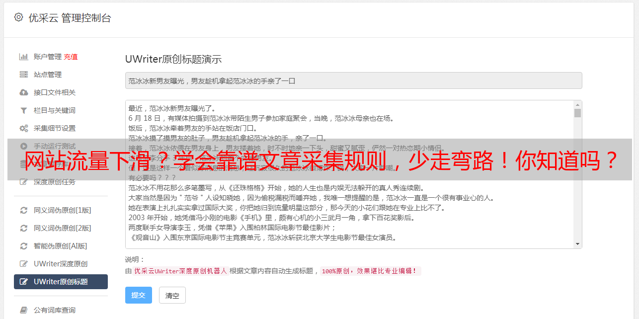 网站流量下滑?学会靠谱文章采集规则,少走弯路!你知道吗?