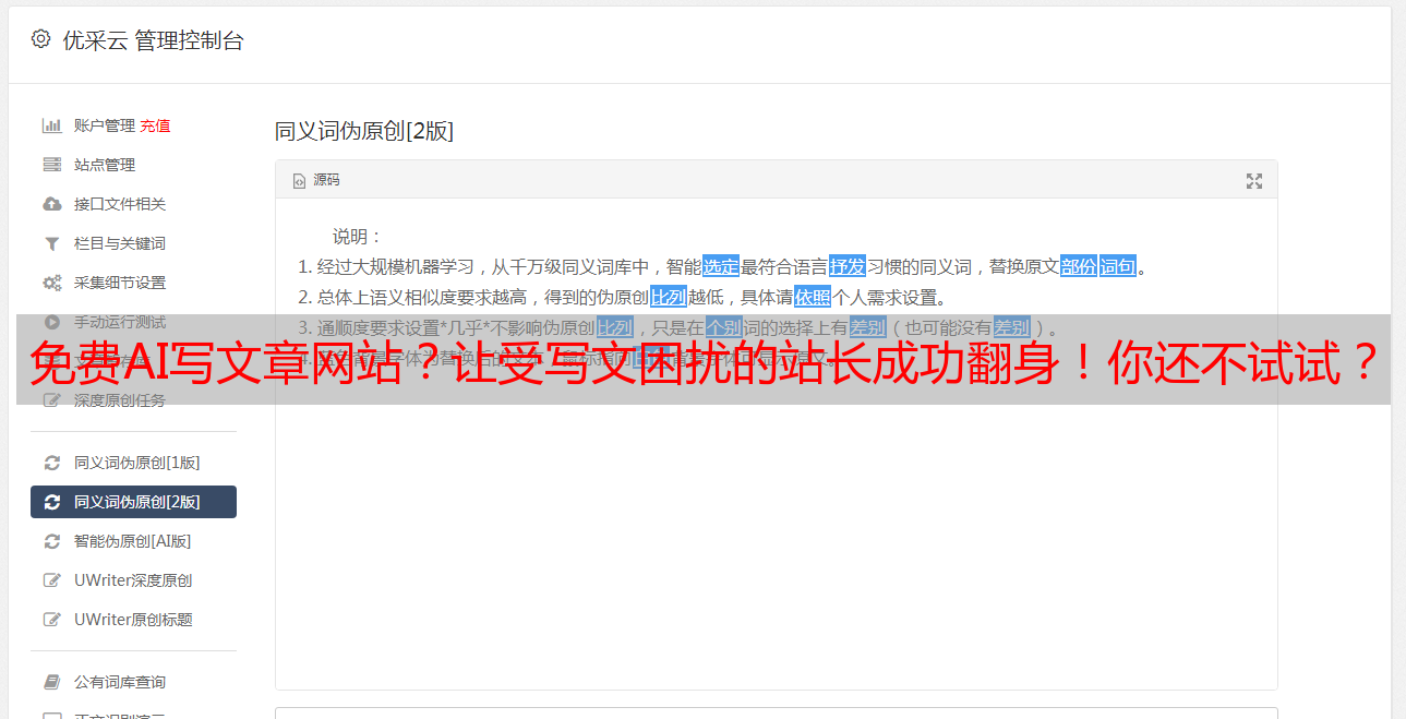 免费AI写文章网站?让受写文困扰的站长成功翻身!你还不试试?