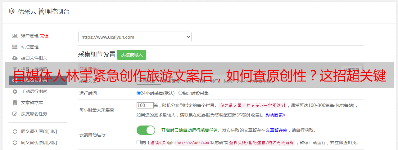 通过这次经历,林宇深刻体会到了查询文案原创性的重要性,也感受到了优采云在文案创作中的强大作用。