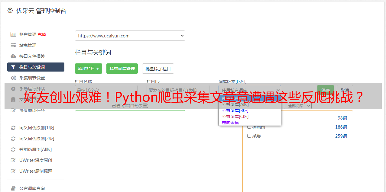 好友创业艰难!Python爬虫采集文章竟遭遇这些反爬挑战?