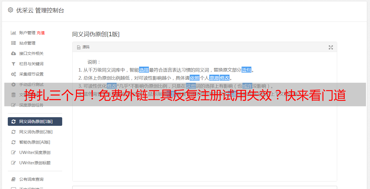 挣扎三个月!免费外链工具反复注册试用失效?快来看门道