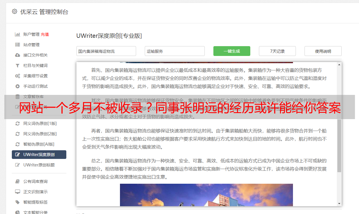 优采云 发布时间: 2025-10-24 13:04如果你正在为网站不收录而苦恼,这篇文章或许能给你一些启发。