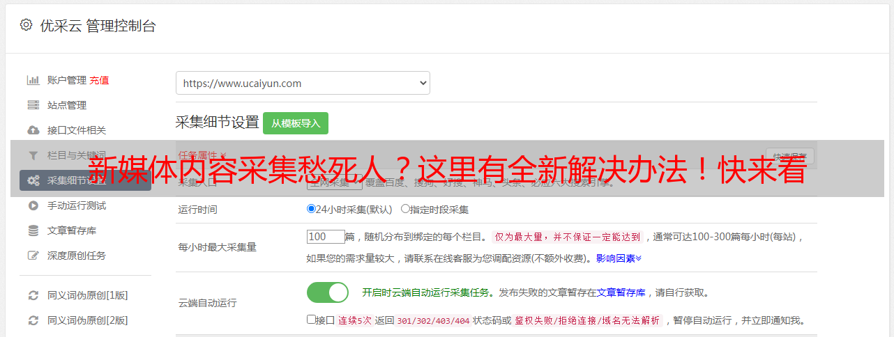 优采云 发布时间: 2025-10-25 12:53要是你正为新媒体内容采集发愁,每日面对海量信息偏寻不到合适素材,那这篇文章会为你公开一个全新解决办法。