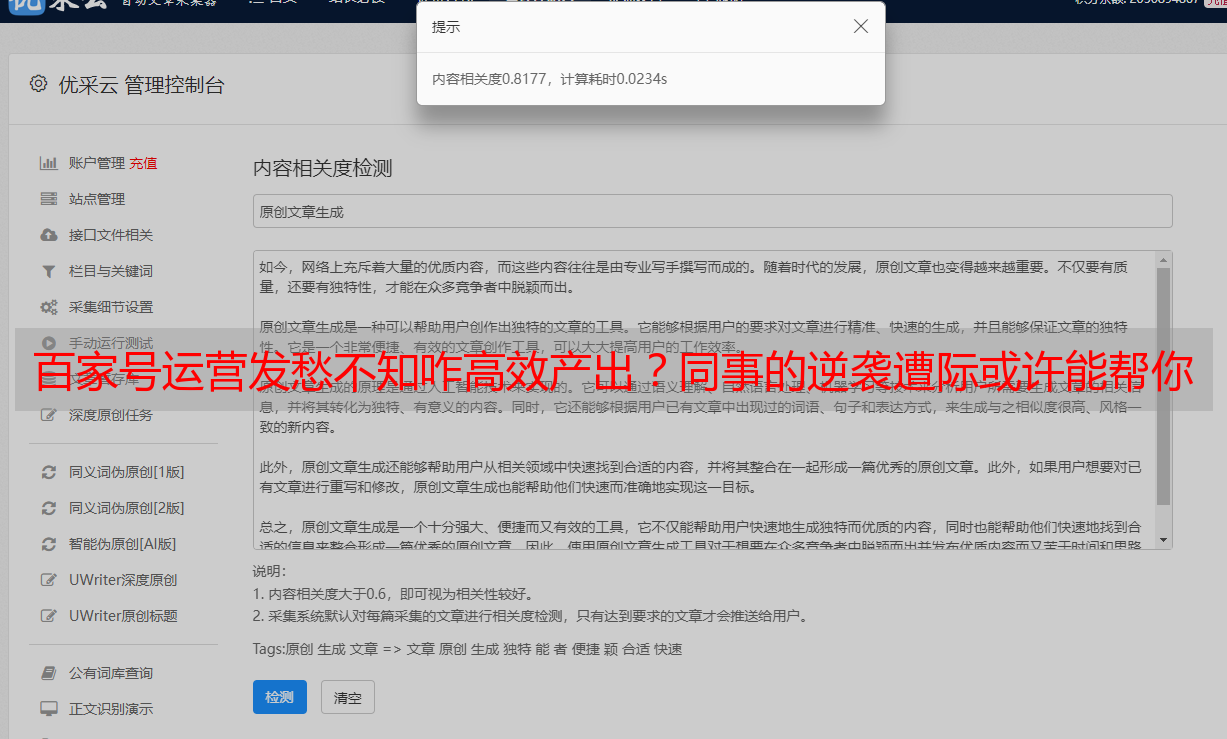 借助智能采集功能,凭借原创生成功能,利用自动发布功能,这三者的功能组合,达成了内容生产的规模化运作。
