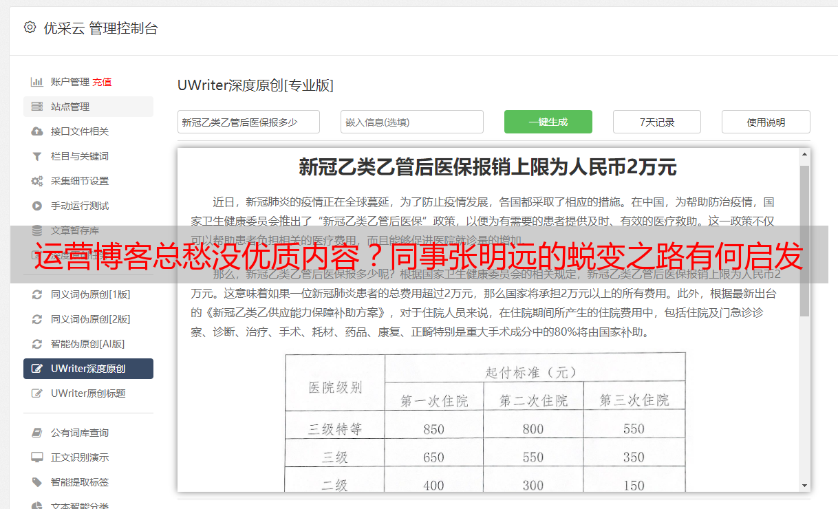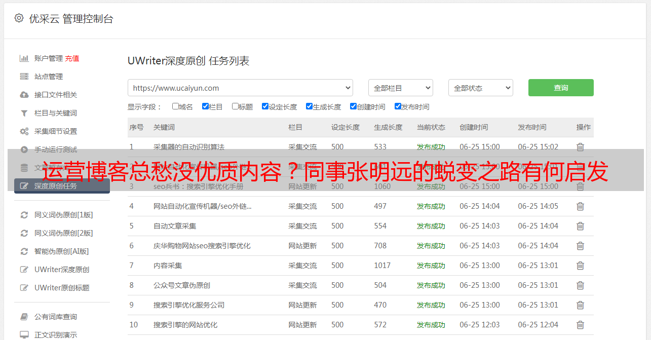他选择的工具是优采云,这个系统让他对内容采集有了全新认识。