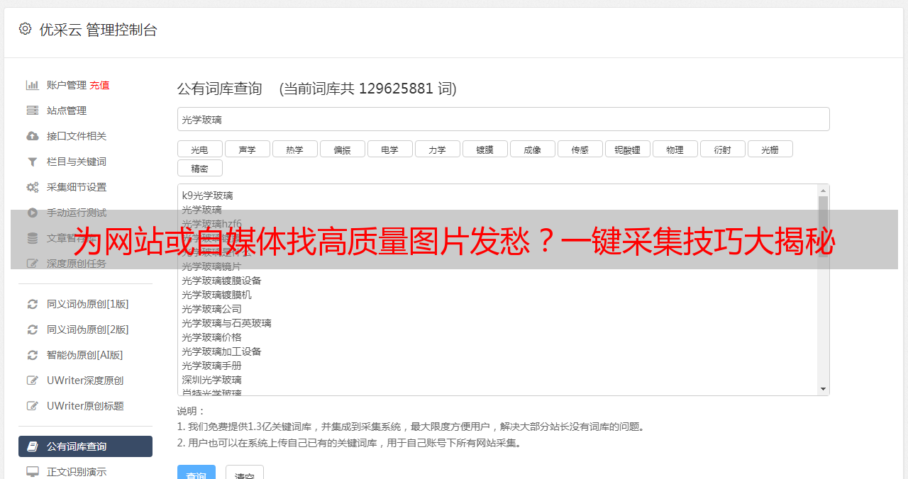 优采云具备图片采集功能,这个功能不仅能够支援从网络那儿获取相关的图片,而且还能够动用AI去生成全然原创的配图。